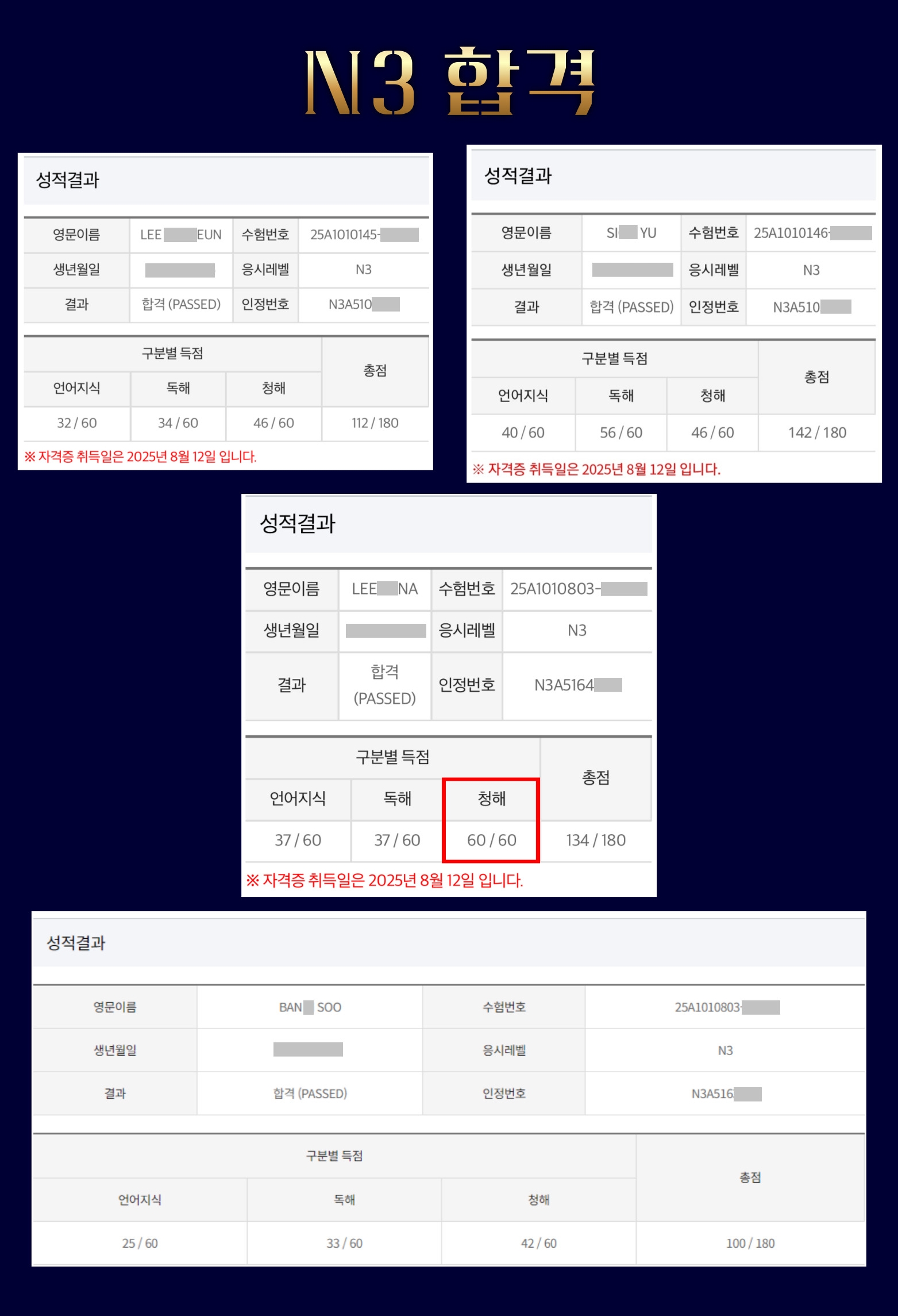 ✨2025³â 7¿ù 6ÀÏ(ÀÏ) Á¦ 1ȸ JLPT ÀϺ»¾î´É·Â½ÃÇè ÇÕ°ÝÀ» ÃàÇϵ帳´Ï´Ù✨